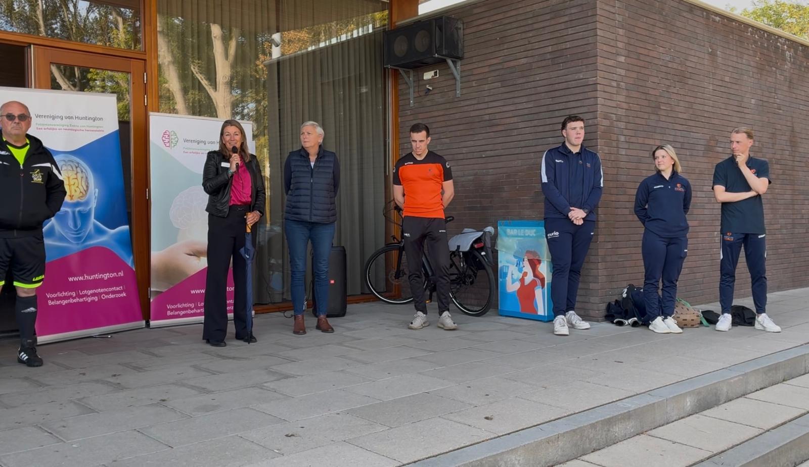 Namens de Vereniging van Huntington waren Cindy Kruijthof en locatiemanager van de Kloosterhoeve Karin Landa bij de kick-off van de NAC Street League. Zij overhandigden de teams een paraplu en een tasje met daarin onder andere pennen en informatie over de ziekte van Huntington. Landa: “Het is mooi dat we op deze manier de generatie die eraan komt bewust kunnen maken wat de ziekte van Huntington inhoudt en wat er gebeurt in ons prachtige pand De Kloosterhoeve. Bijkomend voordeel is dat de kinderen meekrijgen dat goede doelen heel belangrijk zijn. De ziekte van Huntington is een erfelijke neurologische ziekte, een genetische aandoening. Door de ziekte ontstaan er beschadigingen in het hele brein. Die beschadigingen tasten de functies van het brein aan. De ziekte begint vaak tussen het 35ste en 45ste levensjaar, maar er is ook een jeugdvorm die vóór het twintigste levensjaar begint. Door onze aanwezigheid vandaag kunnen we de jongens en meiden die hier vandaag sporten laten weten dat gezond zijn niet vanzelfsprekend is.”